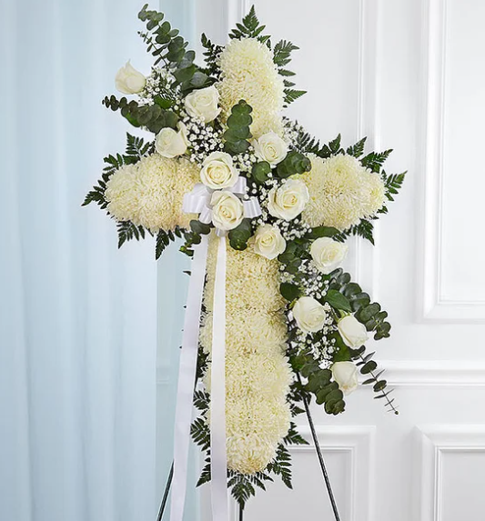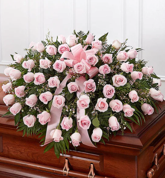 Corona Fúnebre de Rosas Blancas y Rosadas – Despedida con Paz y Ternura