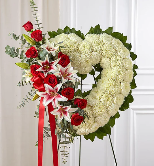 Corazón Fúnebre en Rosas Rojas y Blancas – Homenaje de Amor y Paz